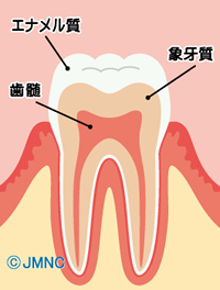 象牙質と呼ばれる歯の構成成分が露出されることを原因として発症します。歯の表面は、エナメル質を呼ばれるもので覆われています。しかし、エナメル質がはがれるとその下に象牙質が露出します。象牙質はエナメル質よりも柔らかく、感覚を司る神経に刺激を伝えやすいものです。そのため、歯磨きや冷たいものの摂取などに関連して象牙質が刺激を受けます。