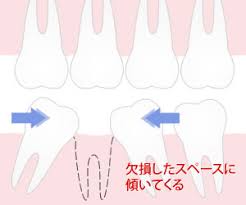 歯が抜けたまま放置していると、歯の位置が大きく変わり、咬み合わせのバランスは崩れて、本来の歯の位置を保てなくなります。結果として、一部分に噛む力が集中し、顎関節の痛みが出たり、歯の寿命が短くなるなどの悪影響を及ぼすこともでてきます