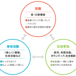 「社会性」は、活動量、精神・心理状態、口腔機能、食・栄養状態、身体機能など、健康分野にも大きく関わります。
