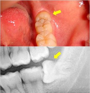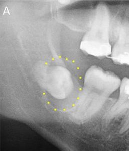親知らずが原因で含歯性嚢胞(がんしせいのうほう)などの嚢胞や腫瘍ができる可能性があります。