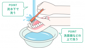 ⚠お湯で洗うと入れ歯の変形や破損に繋がるので冷たいお水かぬるま湯で洗うのが大切です!