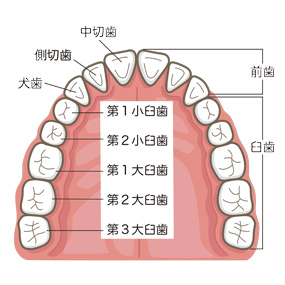 前歯、奥歯という言い方もしますが、通常は切歯と犬歯を合わせて前歯と呼びます。