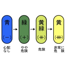 緑→やや危険です。食事やおやつの後はすぐに歯磨きを心がけます。また、食生活には気をつけ砂糖を多く含む飲食物はできるだけ避け、間食の時間は決めましょう。