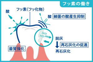 フッ素は、身近にあるミネラル成分で、むし歯予防に欠かせないだけではなく、丈夫な歯や骨をつくるためにも大切な役割を果たしているのです。