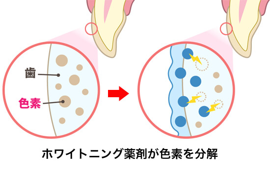 ホワイトニングは、歯の色素を分解する化学反応を利用した、安全で効果的な方法です。
