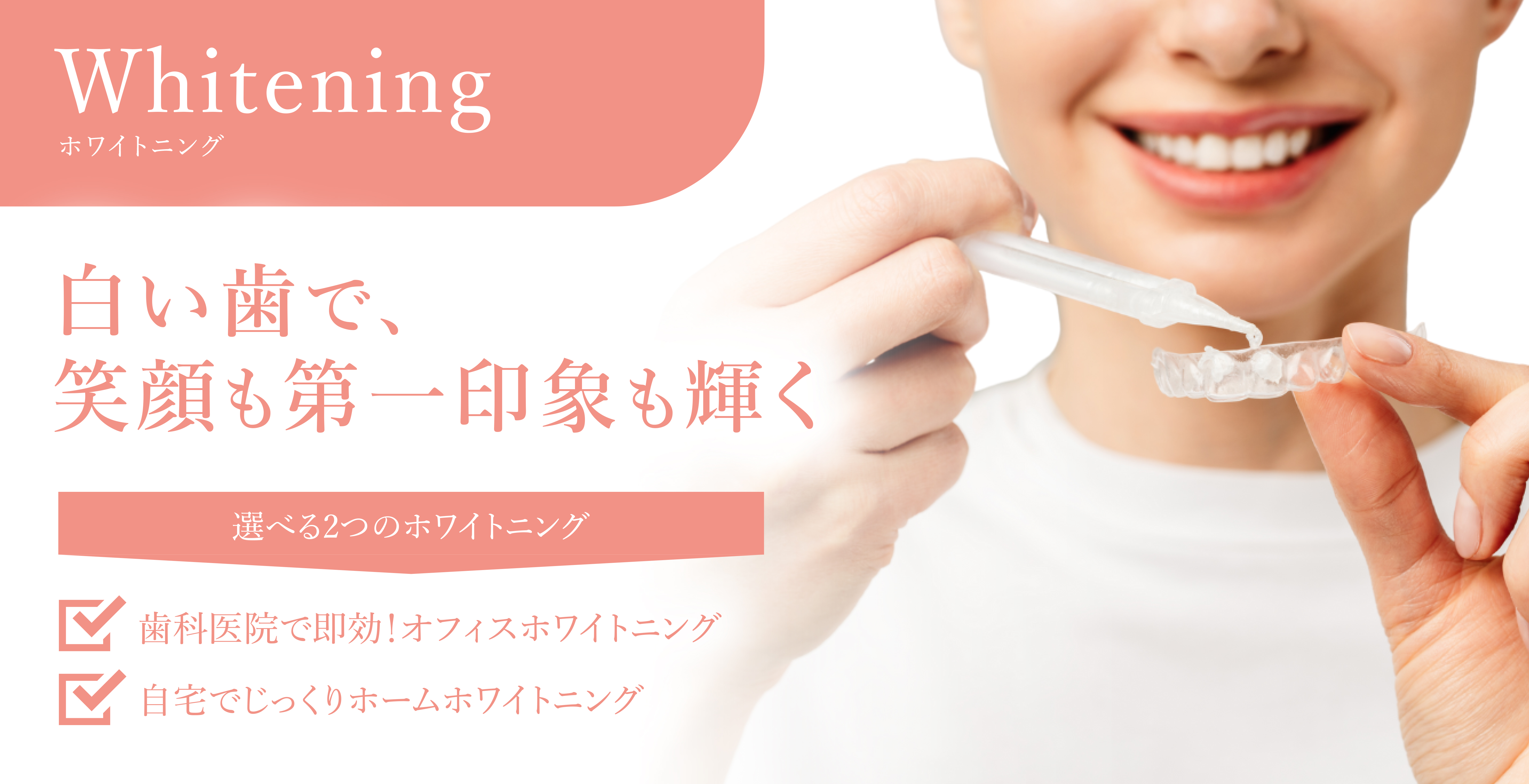 ホワイトニングとは、薬の力で歯を漂白して見た目を明るくする治療法です。歯の表面や内部に蓄積した色素を分解し、元々の歯の自然な白さを引き出します。