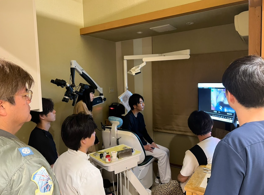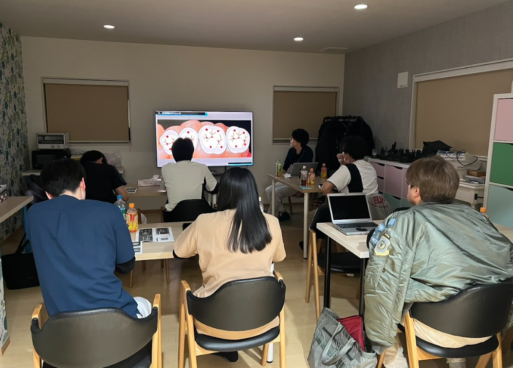 院長・勤務医3名に加え、九州歯科大学臨床研修医の先生2名、外部の若手歯科医師1名が参加し、活発な学びの場となりました。