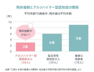 認知症の高齢者は、残っている歯が少ない事が分かります。
