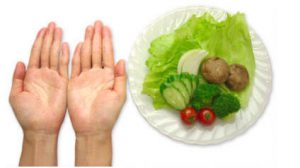 野菜は、緑黄色野菜120g +淡色野菜230gがベストで両手いっぱいになるぐらいが目安になっています。